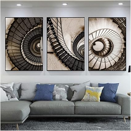 3 Pezzi Nordic Scala A Chiocciola Poster E Stampe Murali Quadri Su Tela Architettonici Quadri Su Tela Immagini Per Soggiorno Decorazione 60x90cm Senza Cornice Amazon It Casa E Cucina