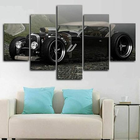 6lv5panel Stampe E Quadri Su Tela 5 Pezzi Quadri Moderni Auto D Epoca Classica Hot Rod Con Cornice 150x80cm Soggiorno Decorazioni Per La Casa Multipannello Arte Moderna Amazon It Casa E Cucina