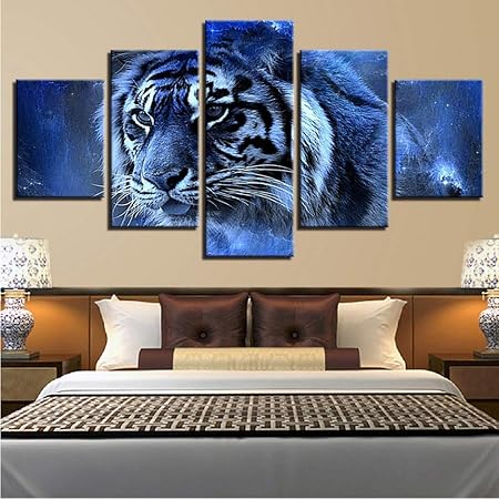 Lbonb Nessuna Cornice Quadri Astratti Per Soggiorno Wall Art Immagini Modulari 5 Pezzi Animal Tiger Poster Stampe Hd Quadro Moderno Amazon It Casa E Cucina