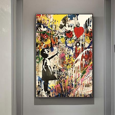 Wmyzfs Ragazza Con Una Mongolfiera Graffiti Stampe D Arte Moderna Street Art Quadri Su Tela Immagini Da Parete Decorazioni Per La Camera Dei Bambini 40x60cm Senza Cornice Amazon It Casa E Cucina