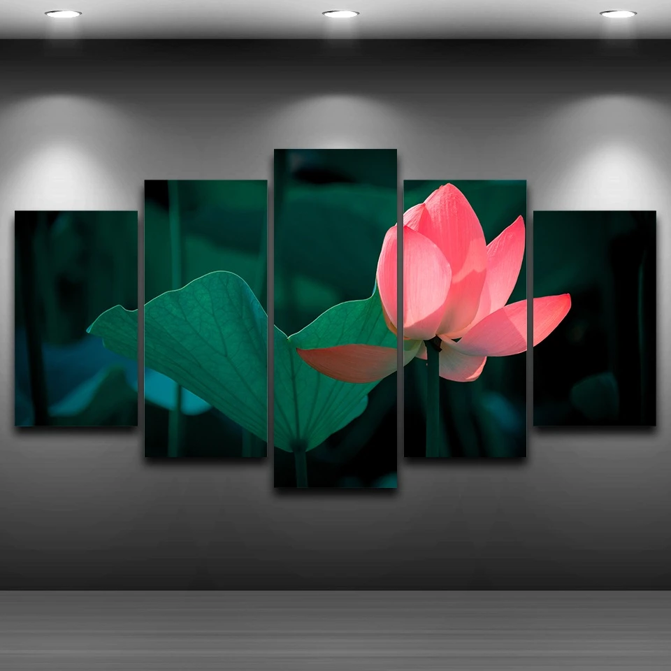 Quadri Su Tela Quadro Hd Stampe Di Arte Della Parete Home Decor Living Camera 5 Pezzi Rosa Pittura Di Fiori Di Loto Foglia Di Loto Poster Pengda Hd Prints Canvas Picturelotus Flower Painting