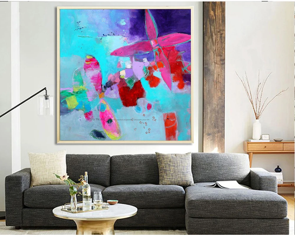 Quadri Astratti Dipinti Pittura Acrilica Del Fiore Su Tela A Buon Mercato Moderno Blu Pittura A Olio Handmade Cucina Camera Da Letto Immagine Kitchen Pictures Abstract Picturecanvas Art Cheap Aliexpress