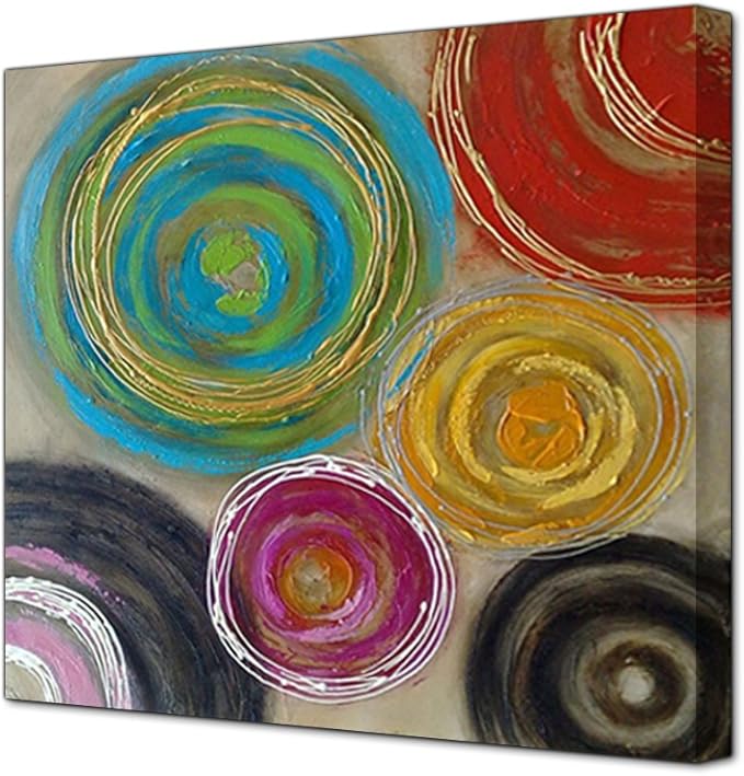 Iplst Astratta Cerchi Colorati Della Pittura A Olio Su Tela Moderna Thick Muro Dipinto Murale Decorazione Quadro Per Soggiorno Camera Da Letto 24x24inch Nessuna Cornice Senza Barella Amazon It Casa E Cucina
