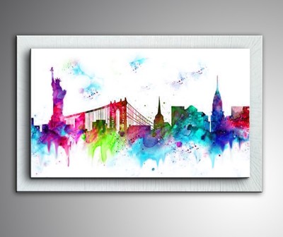 Quadro Moderno Astratto Dipinto Olio Su Tela New York Manhattan Con Cornice Ebay