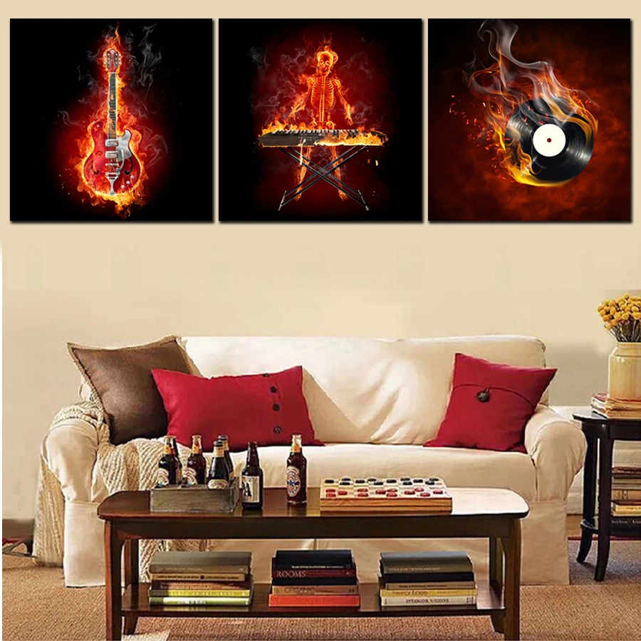Unframed 3 Pezzo Tela Arte Della Parete Chitarra Quadri Moderni Astratti Fuoco Lettore Della Tela Di Canapa Pittura Casa Vernice Decorativo Su Decorazione Della Parete Paint On Wall Canvas Wall Artpictures Modern Aliexpress