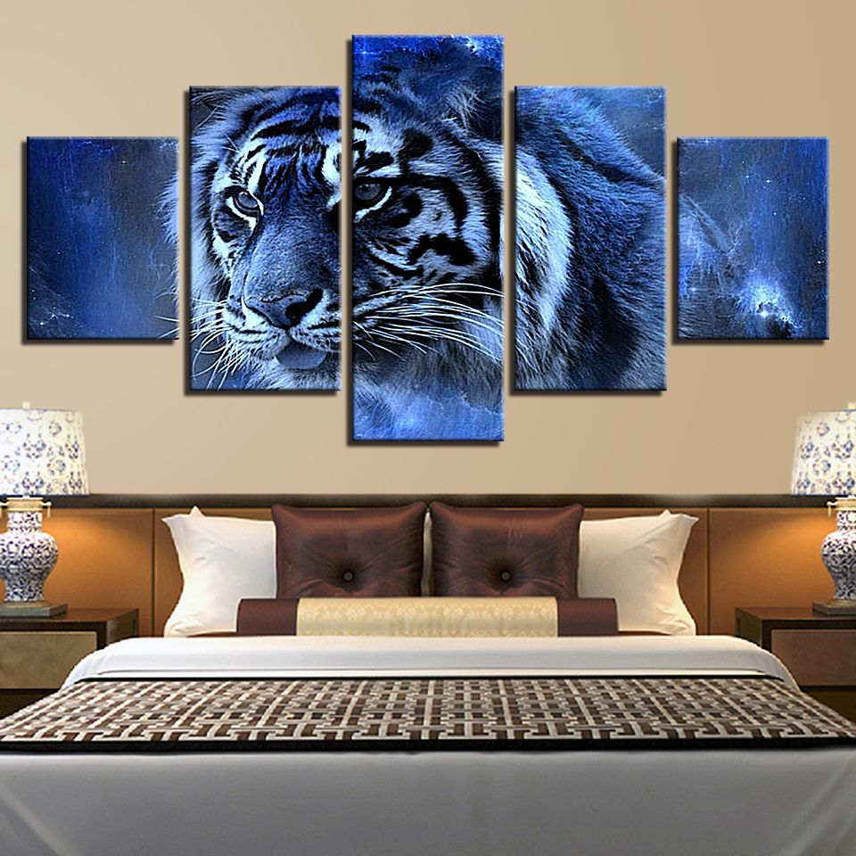 Acquista Quadri Astratti Immagini Soggiorno Di Arte Della Parete Modulare 5 Pezzi Animal Tigre Poster Hd Prints Modern Home Decor Framework A 16 46 Dal Weichenart Dhgate Com