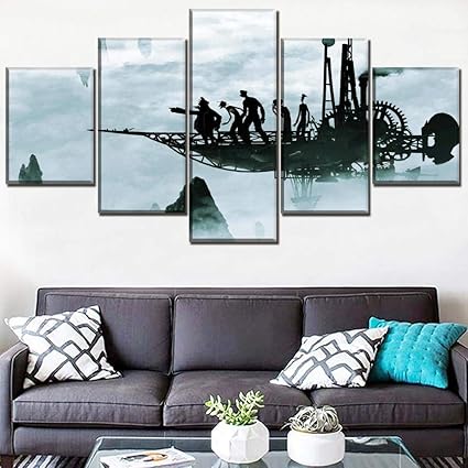 Hgjfg Stampe E Quadri Su Tela Quadri Moderni Soggiorno Xxl 5 Pezzi Tela 5 Pannelli Aeroplano Nebbia Sci Fi Steampunk Astratto Persone Decorazioni Per La Casa Amazon It Casa E Cucina