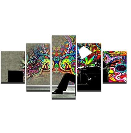 Cinque Dipinti Consecutivi Murales Dipinti D Arte Semplici Quadri Astratti Incorniciati Lampade E Persone 40x60cmx2 40x80cmx2 40x100cm Amazon It Fai Da Te