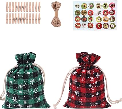 Yqj Calendario Dell Avvento Calendario Natale Da Riempire 2020 Con 24 Sacchetti In Tessuto A Quadri Rosso Verde 10 X 14 Cm Corda 10 M 24 Clip E Set Di Adesivi 8 Amazon It Casa E Cucina