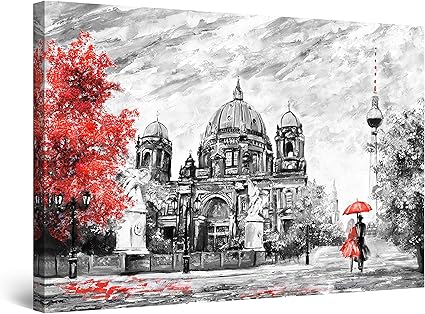 Startonight Quadro Su Tela Vista Della Via Di Berlino Nero Bianco E Rosso Grandi Quadri Moderni Astratti Stampe Camere Da Letto 80 X 120 Cm Amazon It Casa E Cucina