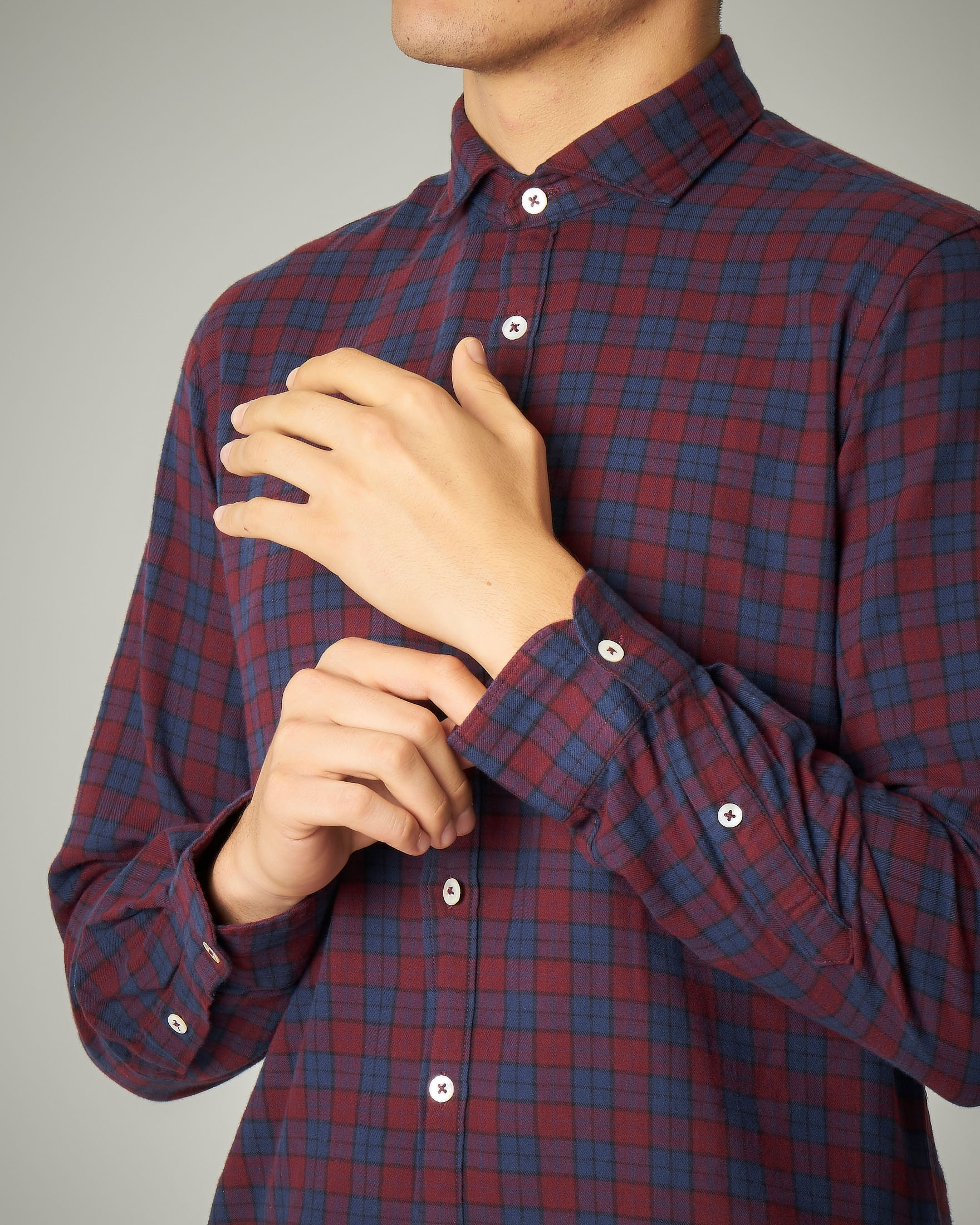 Camicia Uomo In Flanella Bordeaux A Quadri Slim Fit Negozio Online