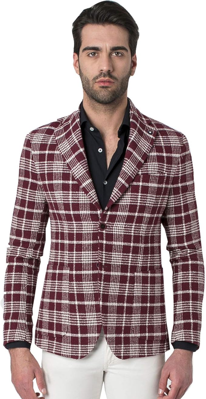 Hitch Man Giacca Uomo A Quadri Bordeaux Unico 48 Amazon It Abbigliamento