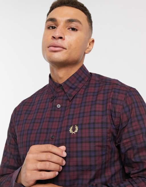 Fred Perry Camicia Bordeaux A Quadri Iebem Morelos