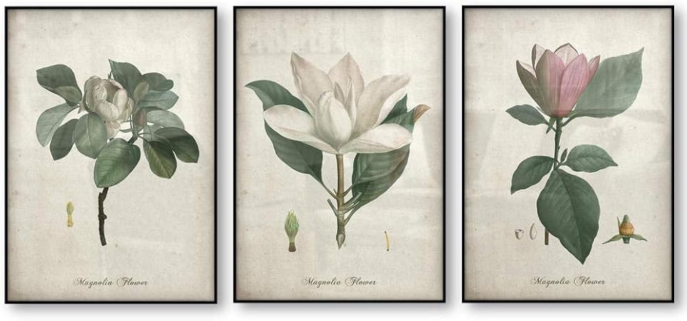 Quadri con stampe botaniche manifesti con foglie verdi fiori e piante per che stanno bene sia in arredamenti rustici che moderni.