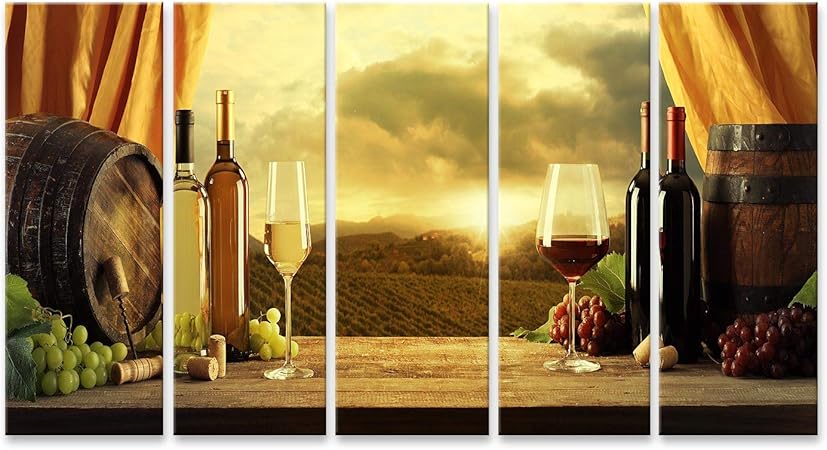 Islandburner Quadro Moderno Bottiglie Di Vino Botti E Vigneto Al Tramonto Stampa Su Tela Quadri X Salotto Cucina Mobili Ufficio Casa Orb 5p N Amazon It Casa E Cucina