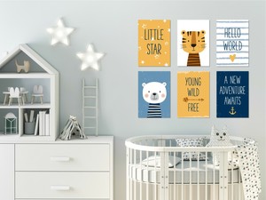 6 Pz 30x40 Quadro Quadri Stampa Su Tela Bambini Baby Animali Cameretta Culla Ebay