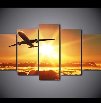 Hd Stampato 5 Pezzi Su Tela Arte Tramonto Aereo Decollare Quadri Murali Per La Decorazione Di Capodanno Amazon It Casa E Cucina