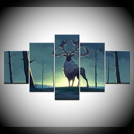 Gxucoa Stampe E Quadri Su Tela Quadro Su Tela Occhi Azzurri Cervo 5 Pezzi Quadro Su Tela Sfondi Modulari Stampa Poster Soggiorno Decorazioni Per La Casa Regalo Di Capodanno Amazon It Casa E