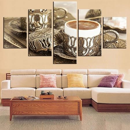 Skshenkai Regalo Di Capodanno Decorazioni Per La Casa Quadri Su Tela 5 Pezzi Delicato Tazzina Da Caffe Poster Soggiorno Cucina Immagini Cornice Stampe Hd Ristorante Wall Art Regalo Di Compleanno Amazon It Casa