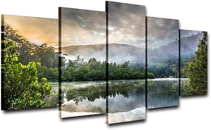 Gxucoa Stampe E Quadri Su Tela Stampa Hd Pittura Moderna Decorazioni Per La Casa Soggiorno 5 Pannelli Lago Foresta Di Montagna Quadro Quadro Su Tela Poster Moderno Tela Regalo Di Capodanno Amazon It