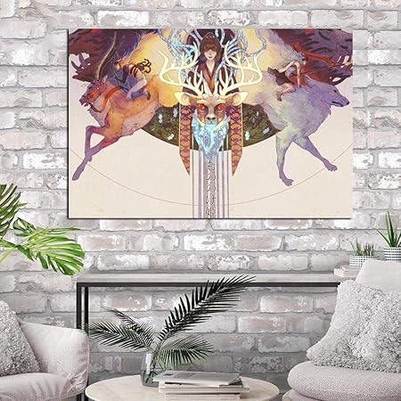 Wjy Quadri Immagini Poster Immagini Bestia E Testa Di Cervo Cartone Animato Ragazza Carta Da Parati Tela Pittura Per Camera Da Letto Home Decor 50cm X75cm Senza Cornice Amazon It Casa E Cucina