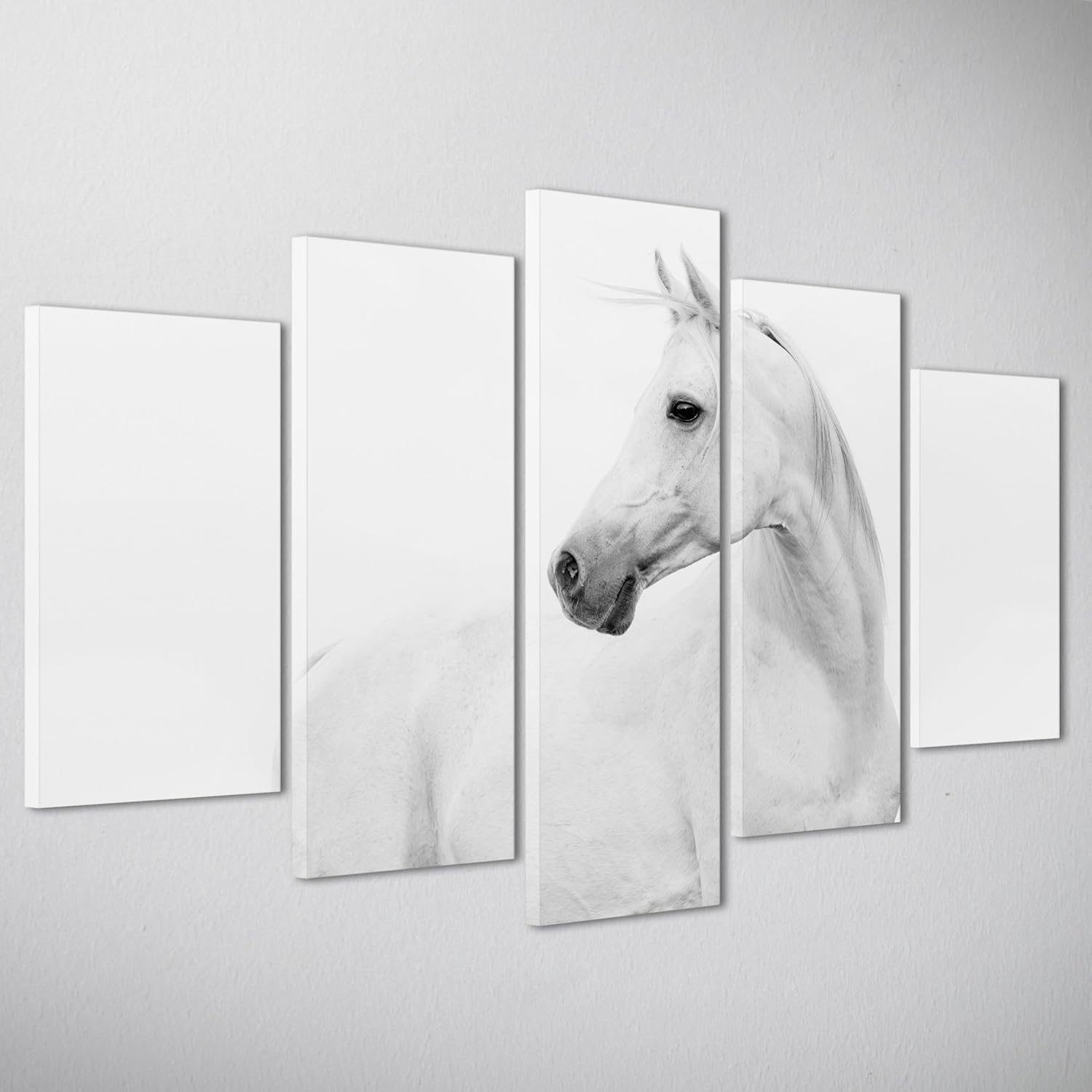 Quadro Moderno Gigante Su Tela Canvas Cavallo Bianco Cavallo Arabo Equitazione Composizione Animali 5 Pannelli 170x90cm Cod 025 Amazon It Casa E Cucina