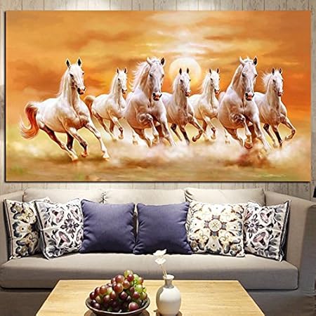 Rtckf Sette Cavalli Da Corsa Pittura Per Animali Arte Su Tela Poster E Stampe In Oro Quadri E Quadri Moderni Immagini Decorazione Per Soggiorno Soggiorno Senza Cornice A1 60x120 Cm Amazon It Amazon It