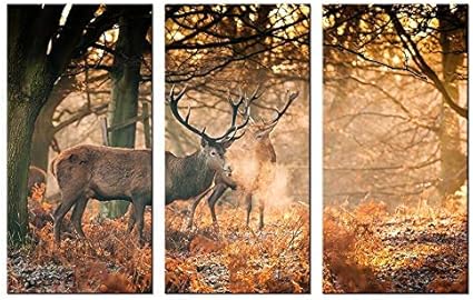 Quadri 3 Quadri Su Tela Albero Di Cervi Paesaggio N Tessuto In Tessuto Foto Poster D Amazon It Casa E Cucina