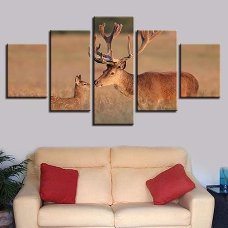 Diedfd Decorazioni Per La Casa Pittura Su Tela Tipo Moderno Quadri Piu Votati 5 Pannelli Cervi Animali Quadri Modulari Quadro Per Soggiorno Amazon It Casa E Cucina