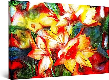 Startonight Quadro Su Tela Colori Chiari Fiori Rosso Giallo Grandi Quadri Moderni Natura Stampe Camere Da Letto 80 X 120 Cm Amazon It Casa E Cucina