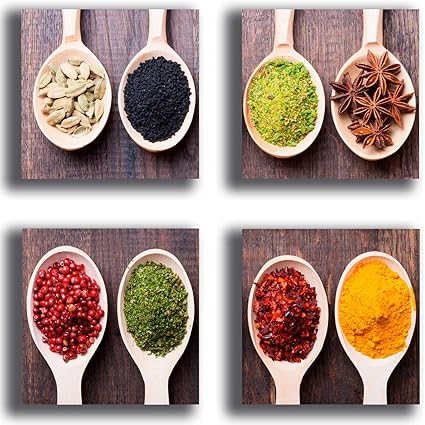 Quadri Moderni Spezie Cibo Etnico 4 Pezzi 30x30 Cm Quadretti Stampa Tela Canvas Arredamento Xxl Arredo Soggiorno Salotto Camera Da Letto Cucina Ufficio Bar Ristorante Amazon It Casa E Cucina