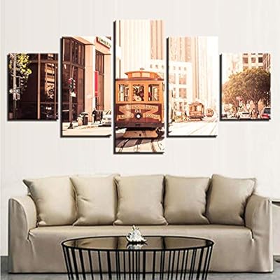 Canvas Hd Prints Pittura Home Decor Quadri Immagini 5 Pezzi Citta Europee Tram Citta Paesaggio Poster Soggiorno Wall Art 40x100cm Amazon It Fai Da Te