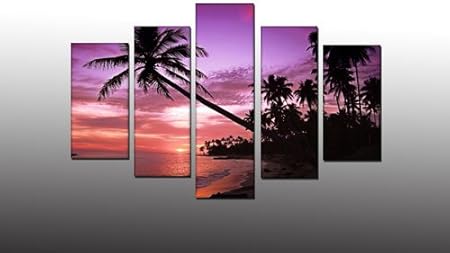 Quadro Moderno Con Telaio 5 Pezzi Componibile Quadri Moderni Palme Tramonto Mare Amazon It Casa E Cucina