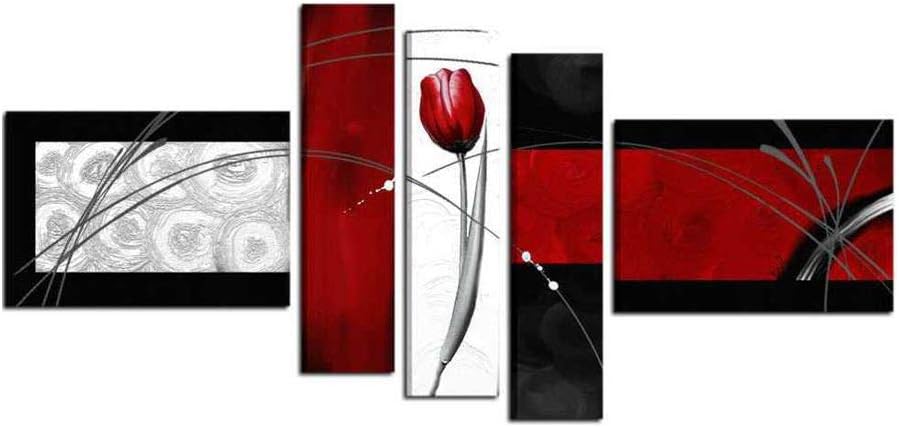 Quadri Moderni Componibili Astratti Dipinti A Mano Olio Su Tela Intelaiati Pronti Da Appendere Rosso Nero Con Fiore Con Certificato Di Artigianalita Alta Qualita Made In Italy Seval Amazon It Casa E