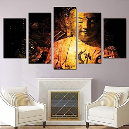 Hqatpr Quadri Componibili Poster E Stampe Immagini 5 Pannello Buddha Paesaggio Decorazione Immagini Vintage Home Decor Dipinti Su Tela Sul Muro Amazon It Casa E Cucina