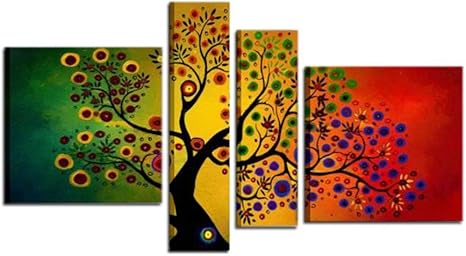 Quadri Astratti Dipinti A Mano 4 Pannelli Componibili Su Tela Quadro Albero Moderno Materico A Rilievo Per Soggiorno Salotto Pronto Da Appendere Con Telaio Amazon It Handmade