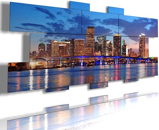Duudaart Quadri Componibili Miami 3d Citta Moderno Multilivello 13 Pannelli 233x107cm Amazon It Casa E Cucina