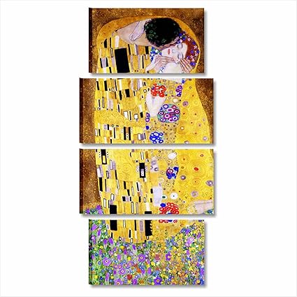 Quadri L C Italia Klimt Il Bacio Quadro Moderno Soggiorno Camera Da Letto Grande 70 X 152 Stampa Su Tela Da Parete 4 Pezzi Componibili Amazon It Casa E Cucina
