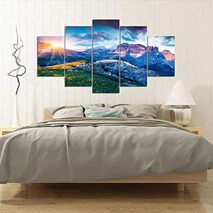 Hqatpr Quadri Componibili Cinque Pezzi Olio Senza Tetto E Montagna Alba Combinazione Soggiorno Camera Da Letto Decorativa Pittura A Olio Stile Nordico Decorazione Della Casa Wall Sticker Amazon It Casa E Cucina
