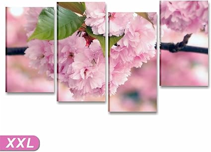 Quadri L C Italia Fiori Di Pesco Quadro Con Fiori Moderni Rosa Bianchi Per Soggiorno Camera Da Letto Cucina Ufficio 152 X 78 Stampa Su Tela Canvas Da Parete 4 Pezzi Grandi
