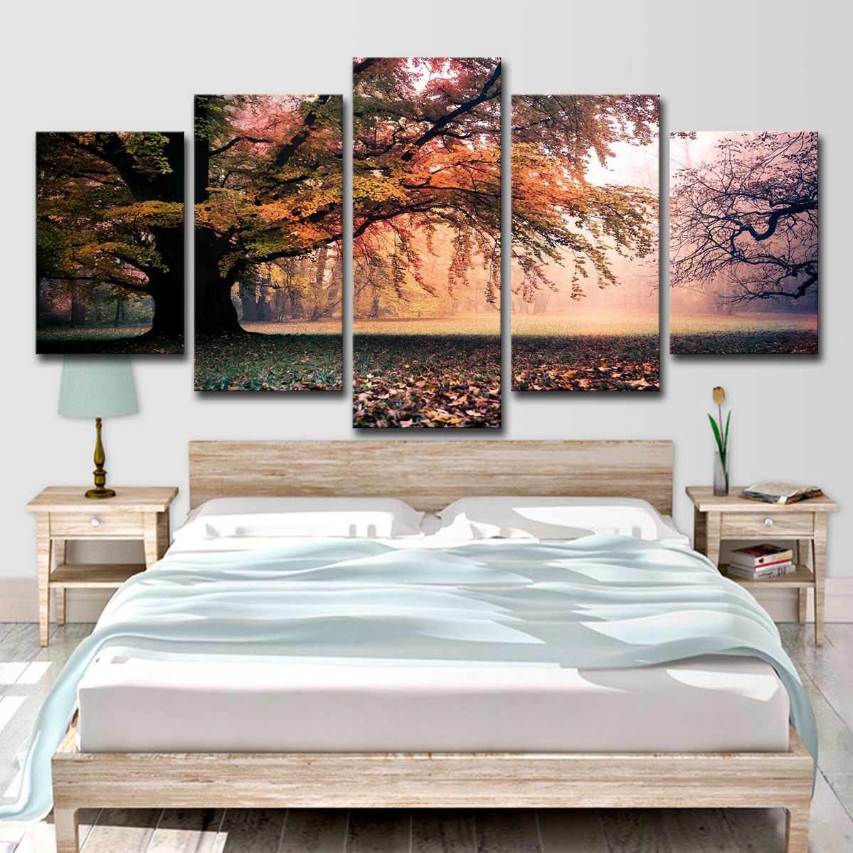 Decorazioni Per Interni Xqjbh 5 Dipinti Fotografici Stampano Opere Darte Su Tela Vista Di Alberi Di Autunno Di Quattro Stagioni 200x100cm Manifesti Modulari E Stampe Su Tela Quadri Murali Per La Decorazione