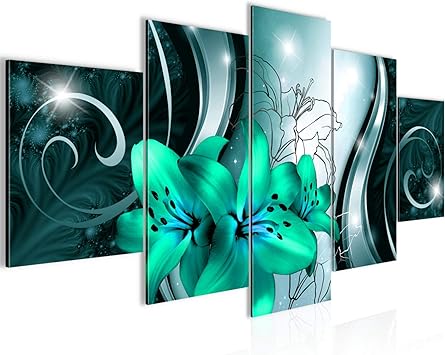 Runa Art Quadri Fiori Gigli 200 X 100 Cm 5 Pezzi Xxl Decorazione Murale Design Verde Nero 208451b Amazon It Casa E Cucina
