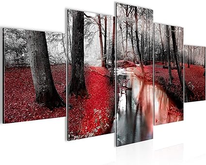 Runa Art Quadri Foresta Paesaggio 200 X 100 Cm 5 Pezzi Xxl Decorazione Murale Design Rosso 602351b Amazon It Casa E Cucina