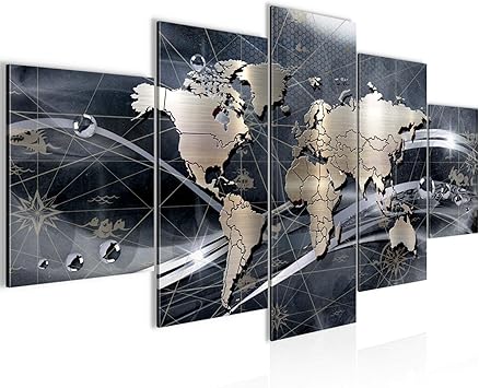 Runa Art Quadri Mappa Del Mondo 200 X 100 Cm 5 Pezzi Xxl Decorazione Murale Design Grigio 106851c Amazon It Casa E Cucina