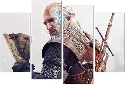 Wlhznb Stampe E Quadri Su Tela 4 Panel The Witcher 3 Personaggi Del Gioco Poster Soggiorno Wall Art Immagini Modulari Decorazioni Per La Casa Moderne Con Cornici Amazon It Casa E Cucina