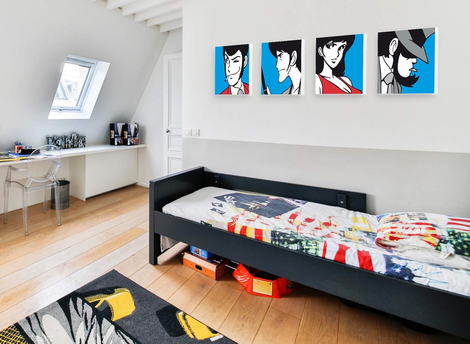 Set Di 4 Quadri Moderni Con I Personaggi Di Lupin Iii Sfondo Rosso Stampa Su Tela Canvas Quadro 20x20 Cm Ideale Per Ar Stampa Su Tela Stampe Cartoni Animati