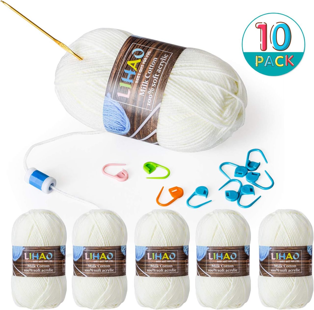 Filato Casa E Cucina Lihao 10pz 50g Filati Lana Gomitolo Filo Cotone Bianchi Morbidi Per Uncinetto Con Ago E Custodia Per Ferri Hobby Creativi