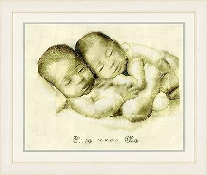 Vervaco Set Per Quadro A Punto Croce Con Schema Numerato Motivo Nascita Gemelli Stoffa Filo Ago E Istruzioni Inclusi 30 X 24 Cm Amazon It Casa E Cucina