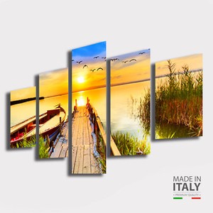 Quadri Moderni Pontile Mare Tramonto Alba 5 Pezzi Stampa Tela Canvas Casa Arredo Ebay