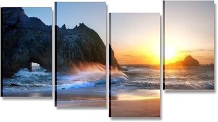 Quadri L C Italia Alba 2 Quadro Mare Moderno Con Pesaggi Per Soggiorno Camera Da Letto Ufficio 152 X 78 Stampa Su Tela Da Parete 4 Pezzi Grandi Multipannello Amazon It Casa E Cucina